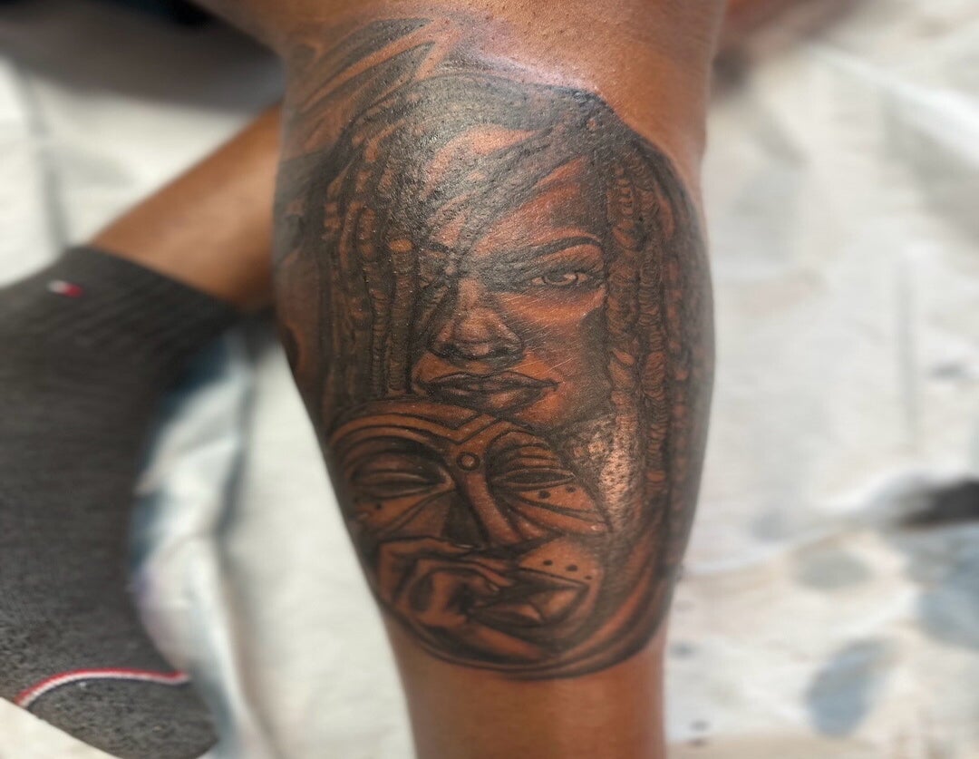 I specialize in bold, meaningful designs that honor melanin-rich skin, and I take pride in creating pieces that stand the test of time — visually and emotionally. From ancestral symbols to portraits, from fine line to full color — if it’s here, it was made with purpose.